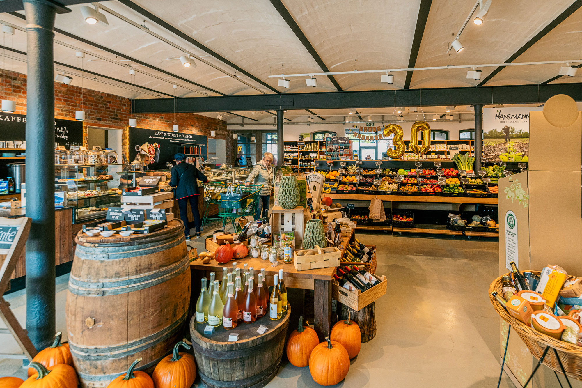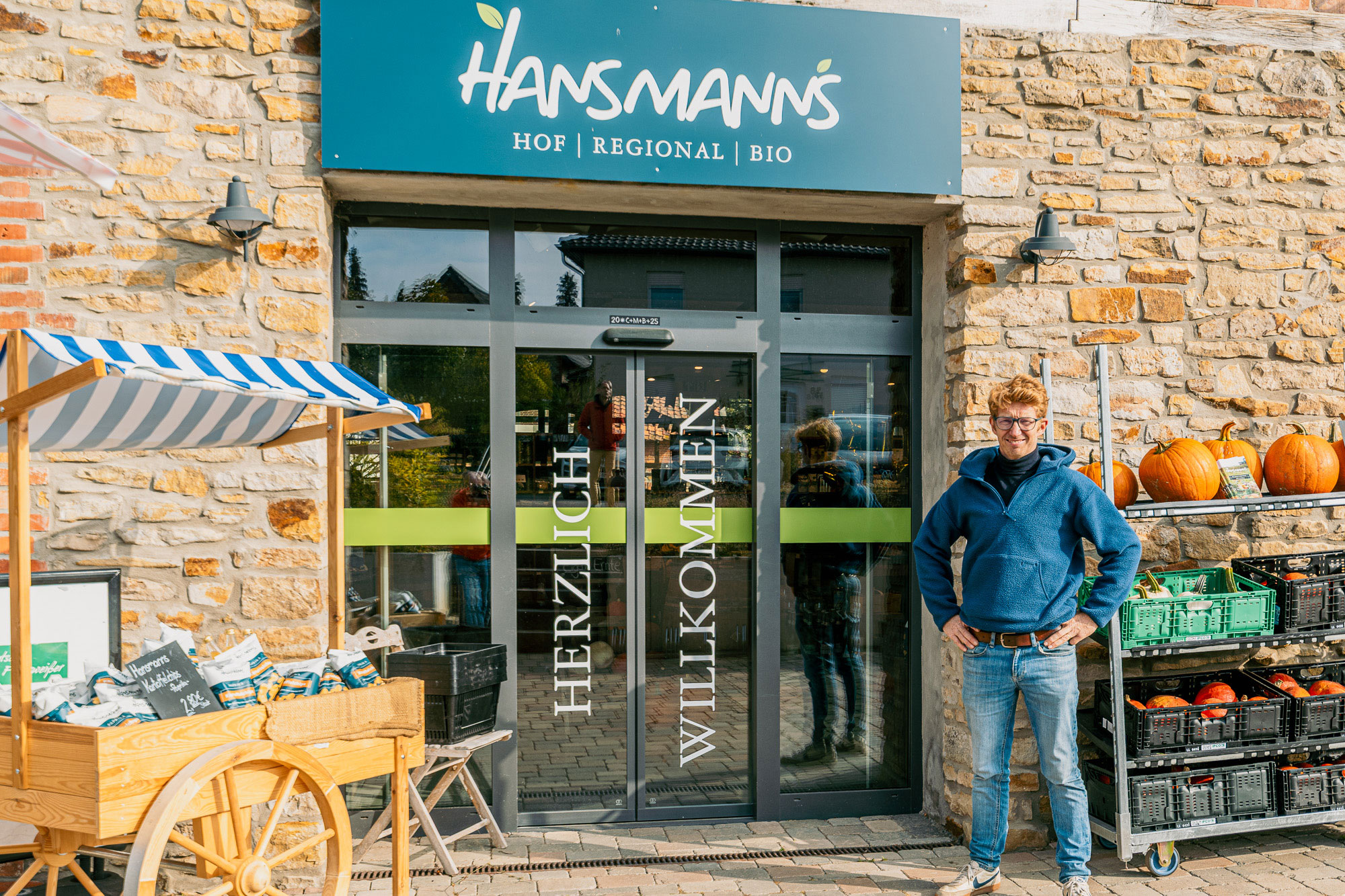 Der Bio-Bauernhof und -Hofladen von Familie Hansmann steht im Landkreis Helmstedt, in der Samtgemeinde Velpke. Er wurde Mitte der 90er Jahre von Elke Hansmann in einer alten Waschküche eröffnet. Heute ist der Betrieb in einen liebevoll restaurierten Vierseithof umgezogen, auf eine Verkaufsfläche von über 200 m² angewachsen und wird in zweiter Generation von den Geschwistern Elke und Lennart Hansmann geführt. Neben dem Einkaufsmarkt gibt es ein Hofcafé und einen Lieferservice samt Online-Shop. Das Produktsortiment kommt vom eigenen Hof, genauso wie von Kooperationsbetrieben aus der Region. Von Kartoffeln und Gemüse, über Brot, Brötchen, Käse- und Milchprodukte, bis zu Wurst, Eiern, Öl, Honig, Kaffee und veganen Artikeln, ist alles in Bio-Qualität vorhanden.