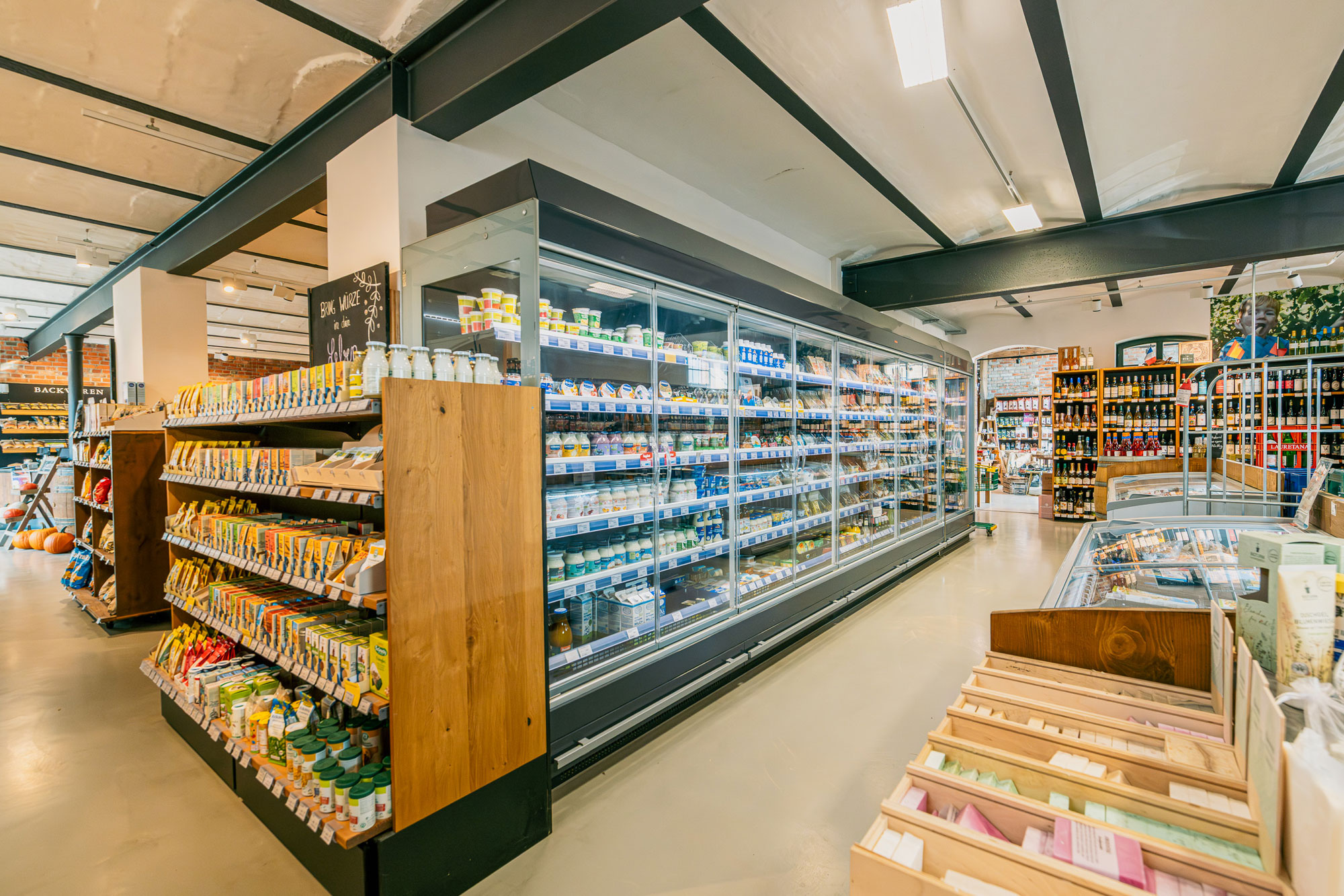 im Laden mit Café und E-Auto-Ladestation