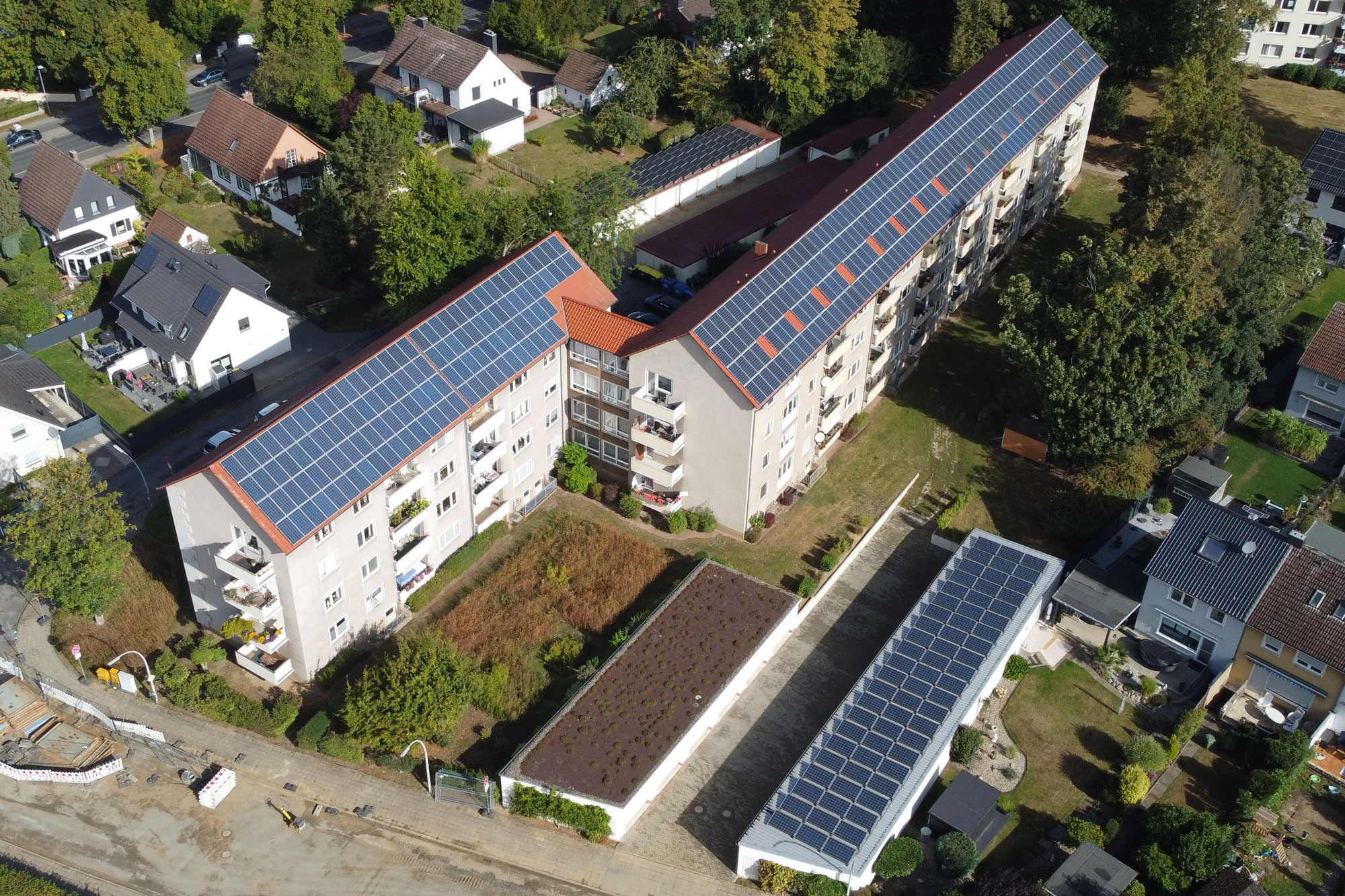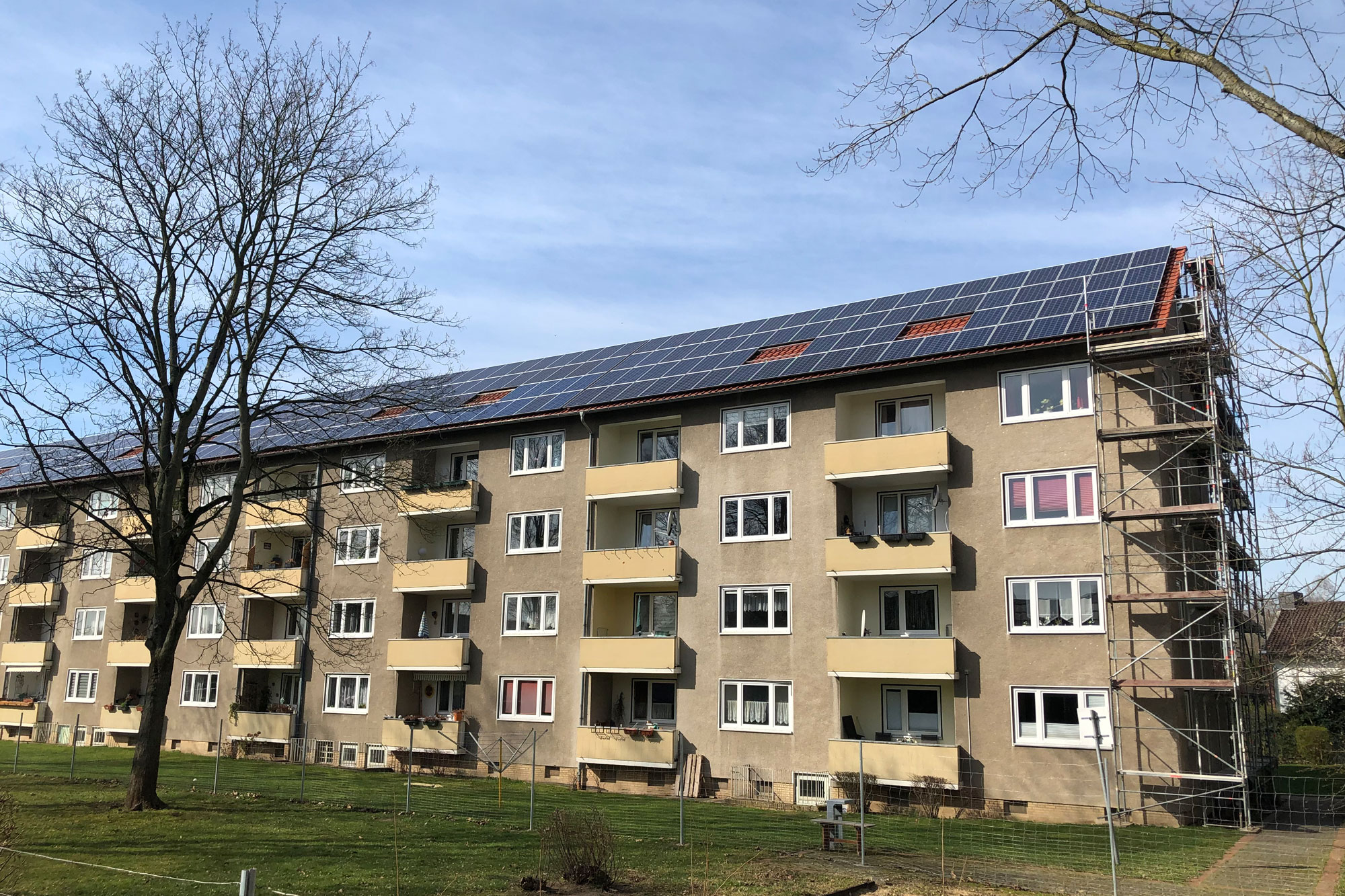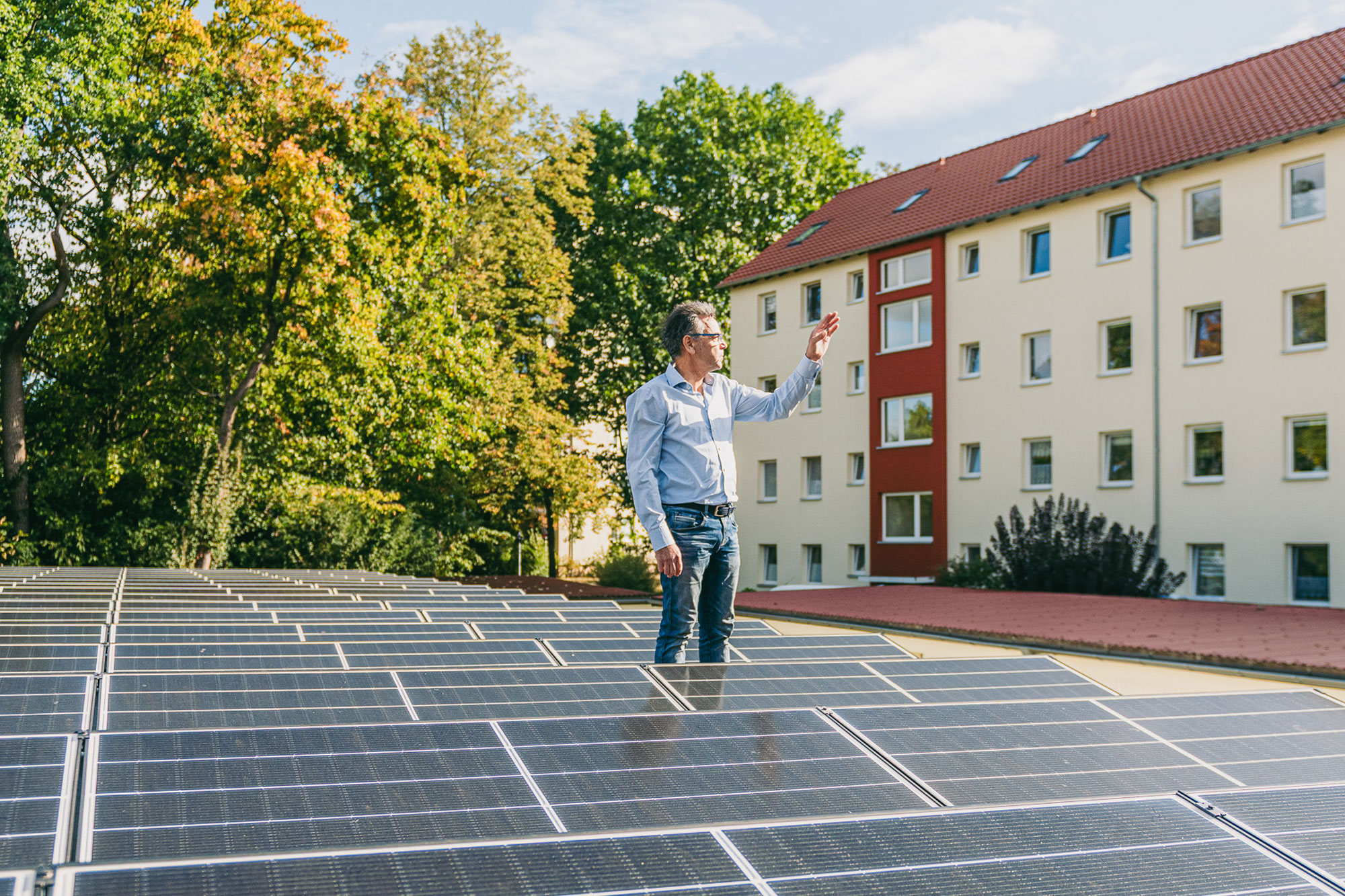Die Immobilien am Coselweg wurden Mitte der 2000er erworben und danach Zug um Zug von oben nach unten saniert. Mit einer Handvoll selbst angestellter Handwerker sowie weiteren Dienstleistern aus der Region, wurden erst die Dächer erneuert, danach die Gebäudetechnik auf einen aktueller Stand gebracht und schließlich die Bäder und Wohnungen überholt. Die ersten Erfahrungen mit Photovoltaik hatte die Firma schon bei anderen Projekten gesammelt, daher war von Beginn an klar, das auch diese Dachflächen maximal belegt werden würden. Gast & Partner wurde Carsten von Bekannten als „korrekte Firma“ empfohlen, so kam man nach einem ersten Kennenlernen schnell zueinander und setzte gemeinsam die nächsten Installationsprojekte um.