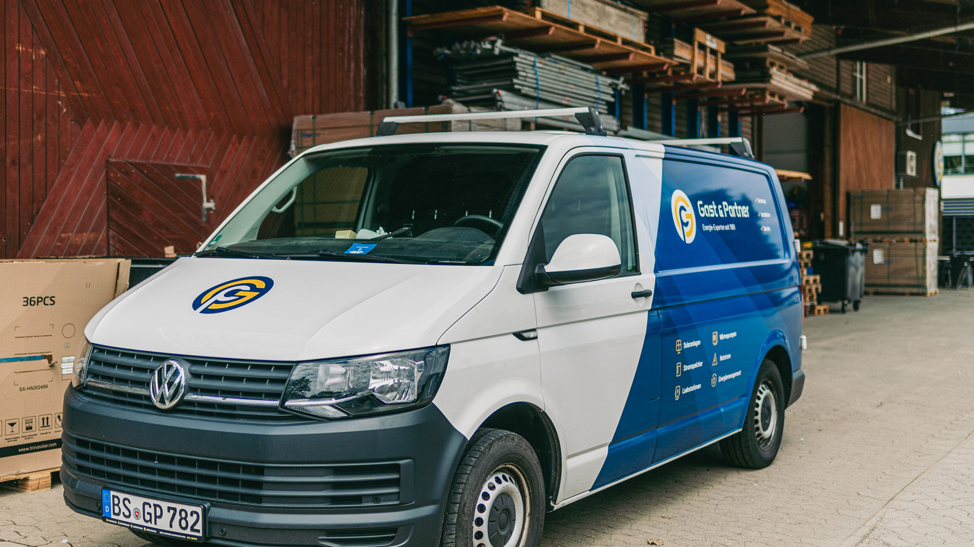 Etwa 150 JinkoSolar-Module wurden im Winter/Frühjahr 2025 auf den südlichen Flachdachflächen der Halle aufgeständert. Zwei direkt auf dem Dach montierte Huawei-Wechselrichter sorgen dort für die direkte Versorgung der Halle. Betreiber ist die Energiegenossenschaft Braunschweiger Land eG.